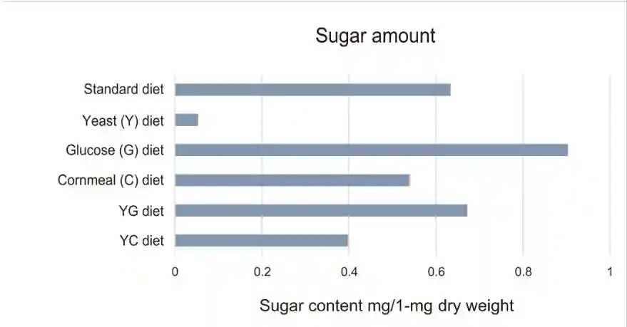 饮食的标准是干酵母、玉米面、葡萄糖和琼脂的混合物。除了标准饮食外,另外还准备了五种替代饮食:干酵母加琼脂,葡萄糖加琼脂,玉米面加琼脂,干酵母和葡萄糖加琼脂。