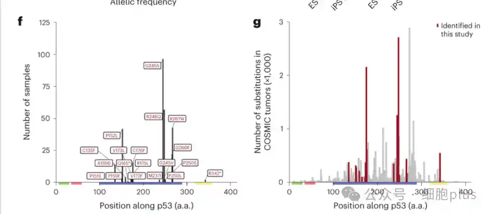 分析中最主要的基因是P53,这是人类癌症中最著名的肿瘤抑制基因。对突变的深入分析显示,干细胞在培养过程中获得的突变与患者肿瘤中出现的突变相似。这些突变导致干细胞退出多能性和分化成体细胞的时间延迟。