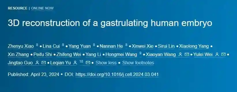 就在昨天,北京理工大学生命学院肖振宇副教授、中国科学院动物研究所王红梅、于乐谦、郭靖涛研究员、中国农业大学魏育蕾教授、郑州大学第一附属医院何南南助理研究员在国际学术期刊Cell发表文章3DReconstructionofaGastrulatingHumanEmbryo,基于芯片技术和三维动画重构技术首次重构高分辨率人类三维数字原肠胚,填补原肠胚阶段人类胚胎发育知识空白,为理解人类早期胚胎发育及相关疾病提供重要资料,为改善不良妊娠结局奠定科学基础。