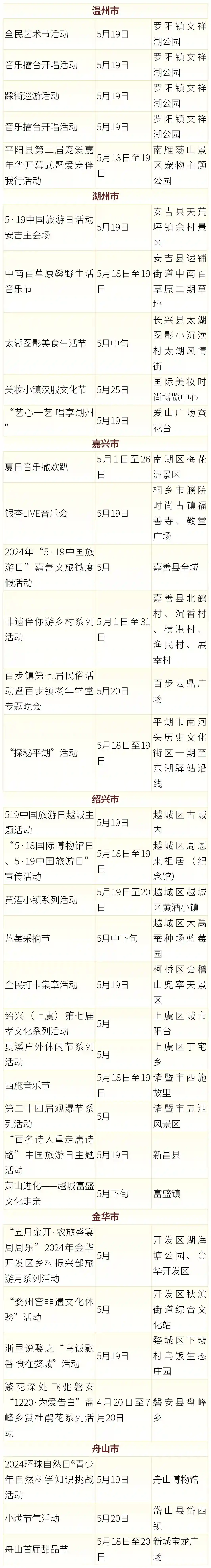 1.在5月19日中国旅游日当天,开展“全球免费游衢州”活动,衢州市域内烂柯山、药王山、天脊龙门山、江郎山、龙游石窟、根宫佛国等14个核心景区对全球游客免费开放