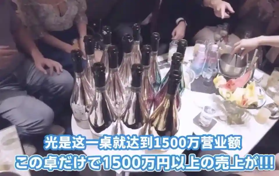 生日party极尽奢侈,名酒一开就是数十瓶,一桌酒的营业额就有1500万日元(约合人民币73万)。