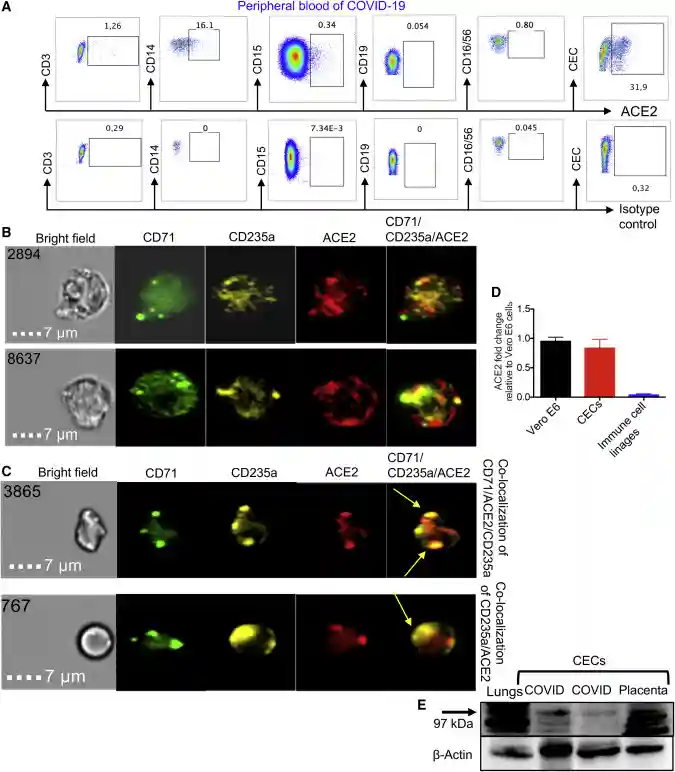 问题是病毒是如何感染未成熟的红细胞的。Elahi因其先前的工作证明不成熟的红细胞使某些细胞更容易感染艾滋病毒而闻名,他开始研究不成熟的红细胞是否有SARS-CoV-2的受体。经过一系列的研究,Elahi的团队证明未成熟的红细胞表达受体ACE2和一个共同受体TMPRSS2,这使得SARS-CoV-2能够感染它们。该团队是世界上第一个证明这点的团队。