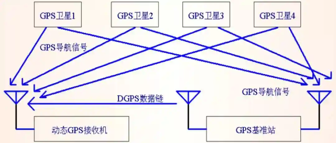也叫DGPS,其本质就是一个单点定位的GPS接收机加上一个地点固定的GPS基准站共同进行定位的方式。其中基准站的数据是一种后处理数据,也叫做DGPS数据链,通过接收DGPS数据,接收机对当前的定位坐标进行修正,从而得到更精确的导航坐标,过程可以用下图来表示。