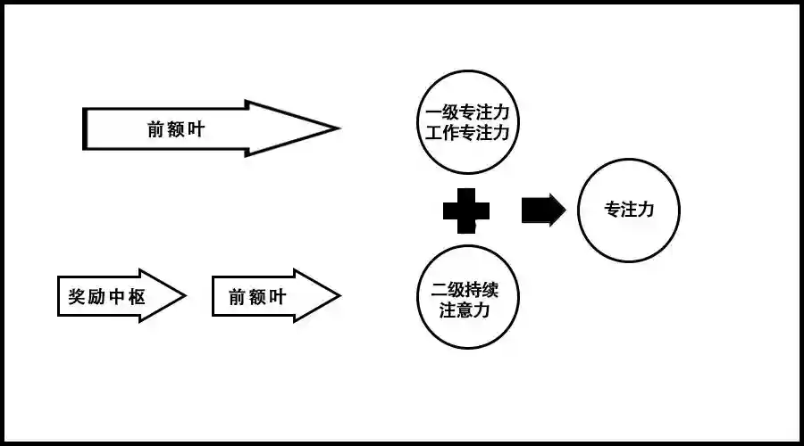 简单地理解,可以把专注力也分成两级,一级专注力是前额叶自身发起的,它占用当前工作区域,对新鲜的事物保持兴奋,但持续的时间不会很长。一旦对新鲜事物失去兴趣,比如学会了一单词后,前额叶就不再兴奋,这个时候要想保持专注力,就需要二级专注力。二级专注力就需要奖励中枢的参与,这些参与奖励中枢工作的分子就是多巴胺及其它蛋白质,也就是我们常说的动机。大家还记不记得在《刻意练习》那本书中,当孩子在遇到平台期时,如果要突破就需要找到内在和外在的动机。道理就是用合适的奖赏方式刺激我们中枢神经。