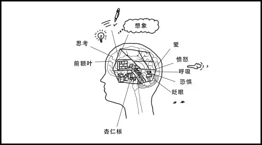其实大脑的结构远比这张图显示的要复杂,我借助《如何让孩子自觉又主动》(英文名THEYESBRAIN)这本书的介绍,把孩子发展中的大脑比作正在建造的楼房,整个人脑分成两层:下层脑和上层脑。下层脑代表了大脑比较原始的部分——小脑、脑干和边缘系统。它们位于大脑中较低的位置,负责一系列基本的神经和心理运作,包括情绪、本能等。而上层脑则指前脑及相关区域,前额叶是上层脑的主要部分。