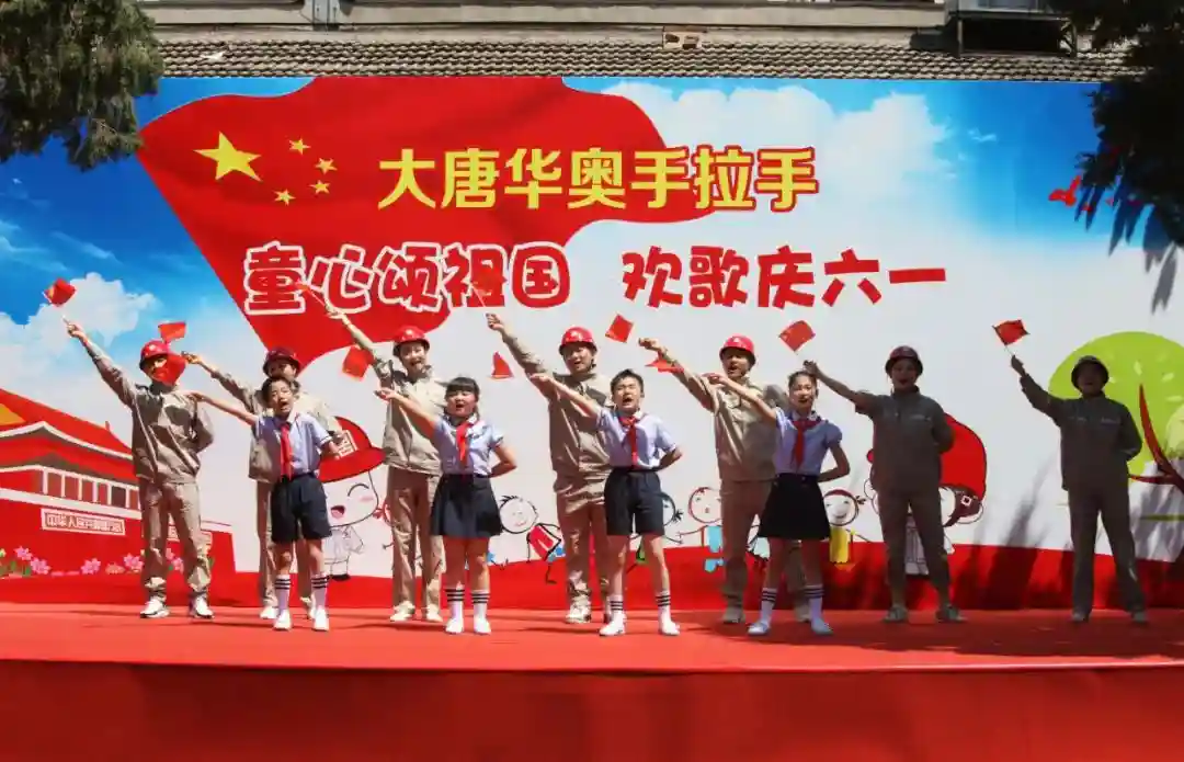 ▲大唐环境对北京市石景山华奥学校连续五年开展“文化助学”活动,图为开设“大唐启明星课堂”系列活动之“我和我的祖国”千人音乐课