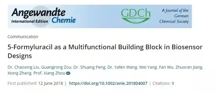 研究不息,探索不止,武汉大学化学与分子科学学院的研究人员介绍了一种将5fU作为多功能合成模块的新概念,有望促进生物传感器的设计和合成。他们在化学领域著名期刊上发表了这一研究成果。通讯作者为武汉大学化学与分子科学学院院长周翔教授,该研究中采用的小鼠胚胎干细胞和胚胎干细胞完全培养基来自赛业OriCell®。