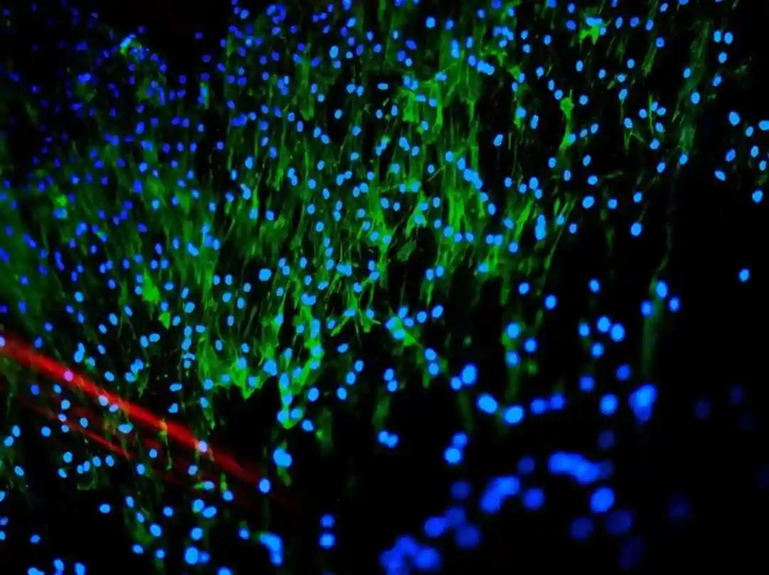 人类间充质干细胞附着在纤维蛋白上@Flickr,RoseSpear,viaEngineeringatCambridge