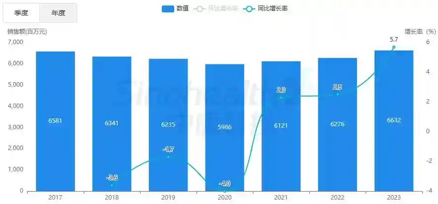2023零售终端肝病治疗药销售超66亿