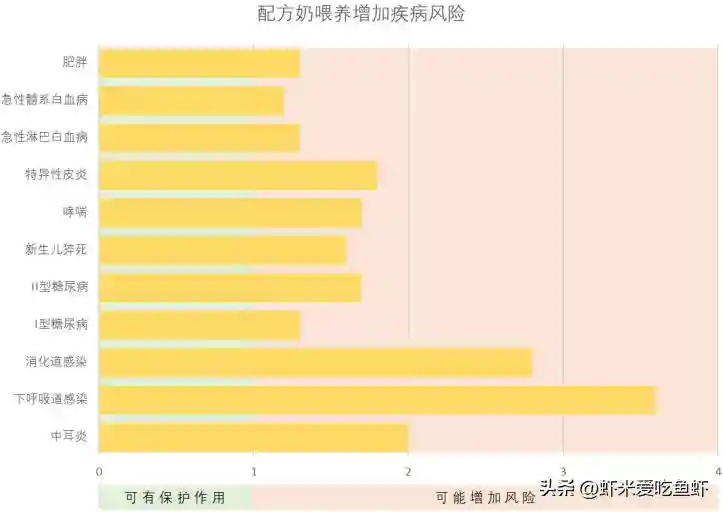 01更容易出现呼吸道感染、腹泻、中耳炎或其他感染,发生过敏性疾病的风险更高,例如湿疹、哮喘等,更容易因摄食过量而出现超重或肥胖。