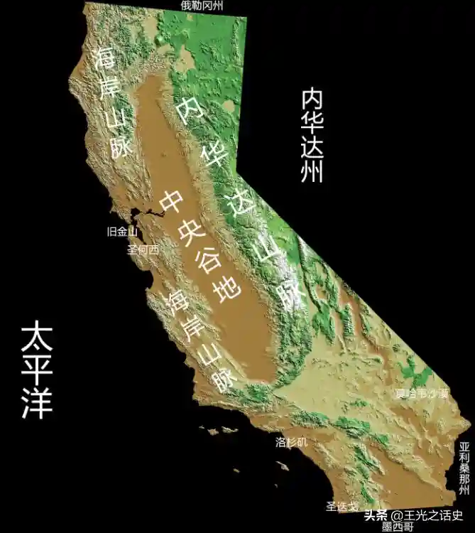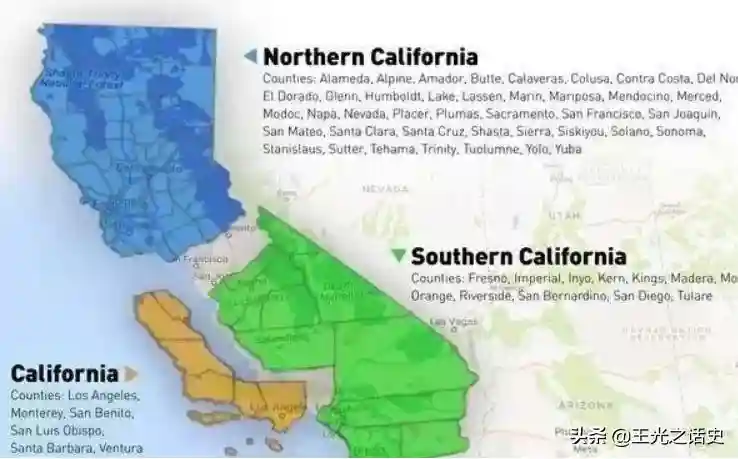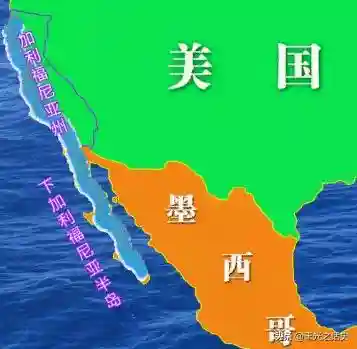 加利福尼亚地区示意图,其实加利福尼亚地区包含着美墨两部分的加利福尼亚