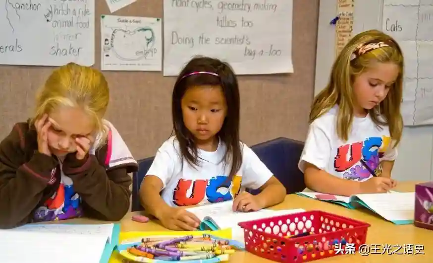 加州大学主办的夏令营活动中,一个亚裔女孩和两个白人女孩一起学习