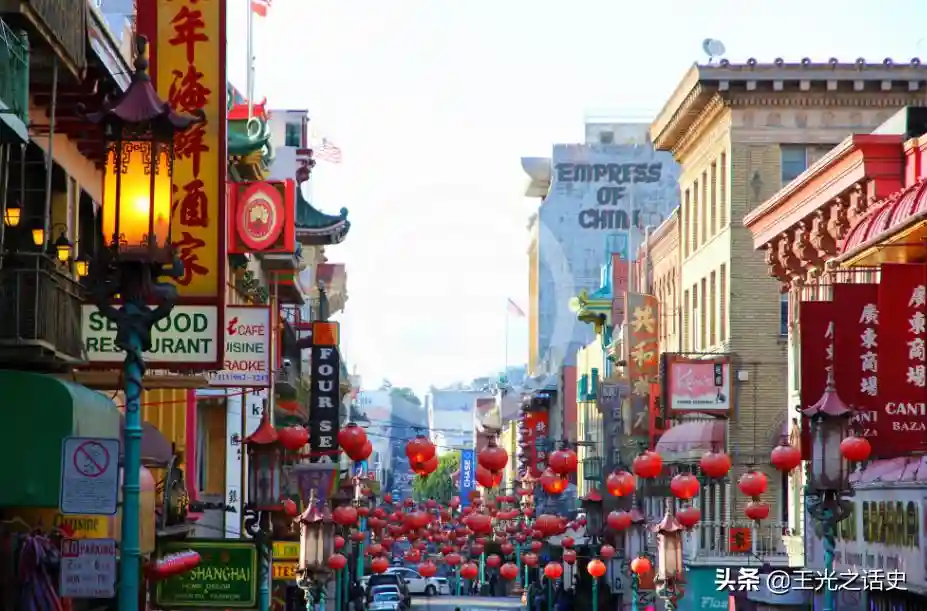 位于加州旧金山市的唐人街。这些唐人街,是在清朝末年因为淘金热来到美国加州的华人修建的