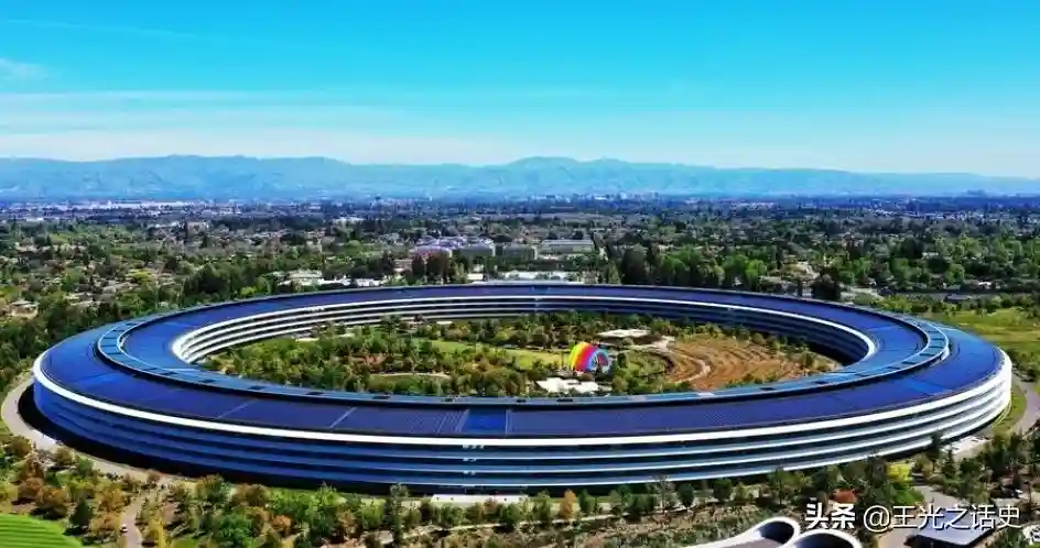 位于硅谷的苹果公司总部,苹果公司是以电子科技产品开发为主要业务的高新科技公司,产值排名世界前列