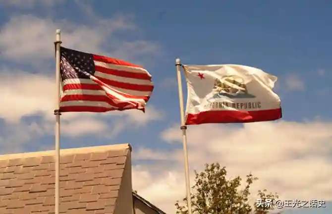 加州州旗,你没看错,上面写着“加利福尼亚共和国”,这象征着加州的“州权主义”