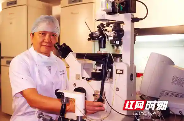 卢光琇教授在试管婴儿实验室里工作。