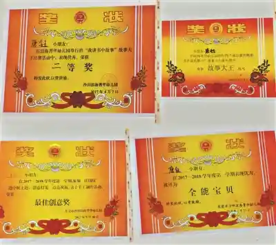 虽然只上了一学期幼儿园,但小钰获得不少奖状。