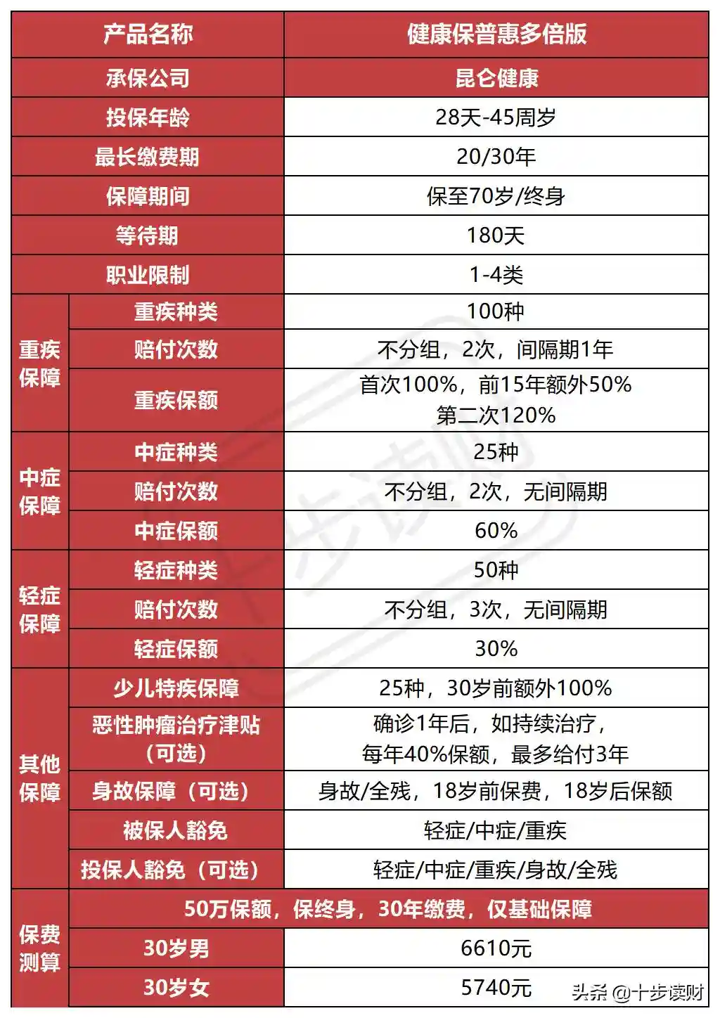 6、价格亲民,性价比高,保费价格跟现有单次重疾产品差不多。