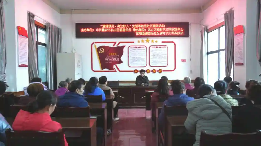 为广泛宣扬道德模范和“身边好人”的先进事迹和崇高精神,充分发挥先进典型示范引领作用,进一步弘扬社会正能量,近日“道德模范先进事迹进社区”宣讲活动在蒙阳街道西城社区开展,邀请了“善行雅安德润雨城”2022年度雅安好人朱辉作宣讲,社区干部、群众代表等聆听了宣讲。