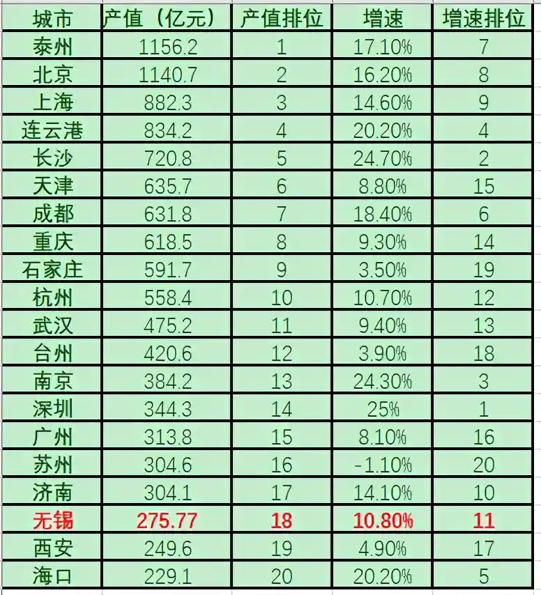 在全国十万亿级的生物医药产业总值中,无锡生物医药产业已稳稳地站在了千亿级规模之上;全市纳税百强企业的榜单上,有6家来自生物医药企业,并占据了第一、第二的头部位置。