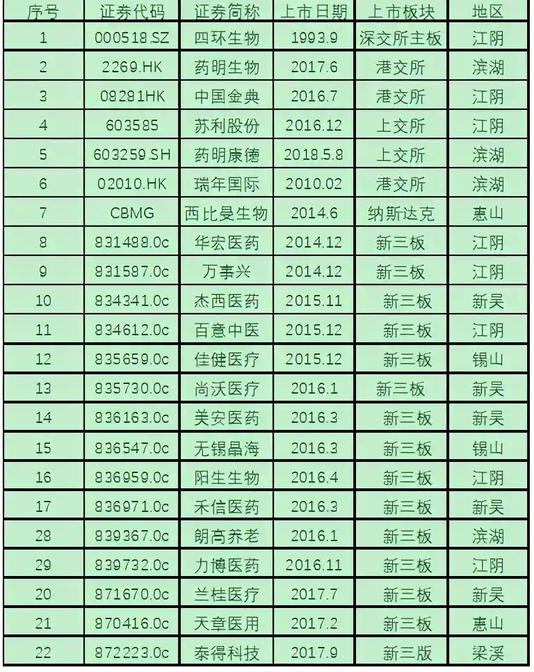 表2:无锡市生物医药产业上市企业情况