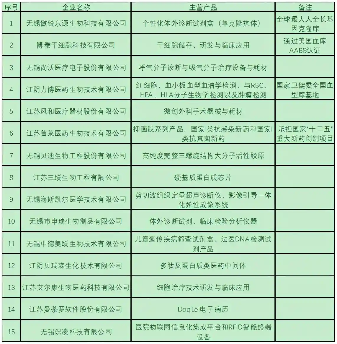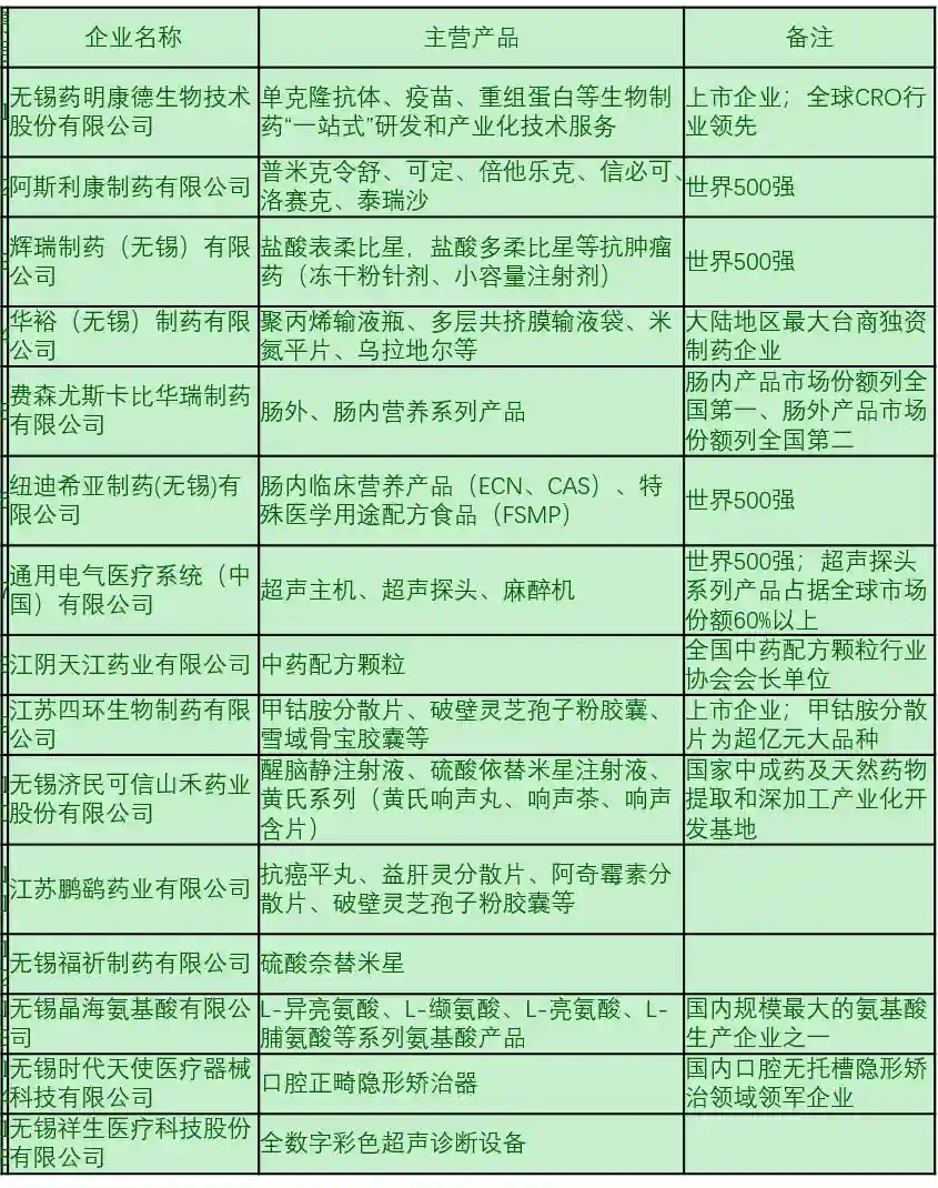 表3:无锡市生物医药重点企业