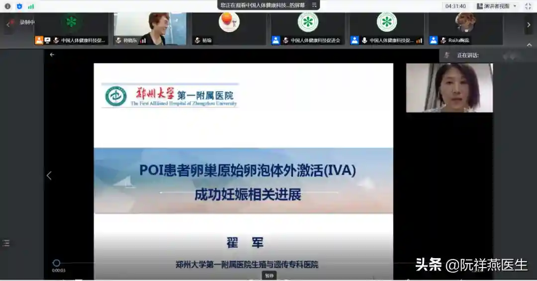 阮祥燕主委充满激情地讲道:“尊敬的各位同道,各位朋友:我谨代表中国人体健康科技促进会生育力保护与保存专业委员会对参会的全体委员及全国同道致以衷心感谢!专委会刚成立1个多月,我国就遭遇了一场前所未有的新冠疫情,一夜之间,我们都成为战士。有的白衣执甲、逆行出征;有的坚守阵地,众志成城,疫情防控成为我们的头等大事。最近,河南多地遭受千年一遇的暴雨洪灾,河南豫北一所大型教学医院百年不熄的长明灯,在这次洪水中第一次熄灭。瞬间,抗疫战士又成了抗洪英雄!今天这次会议,大家虽不能面对面,但都能在线上见到,这是一种幸福。近2年来,我们遇到了从没有过的困难与挑战,除抗疫抗洪外,我们仍不忘成立专委会的初心使命,砥砺前行,并取得阶段性成果:1.成功启动了全国多中心POI临床研究项目;通过协会申请、专家多轮评审及答辩通过立项全国多中心POI临床研究项目,各委员单位积极报名,入选102家分中心,目前已启动的分中心有70家,希望大家继续努力,这将是中国及全世界关于POI最大规模的一次调查研究,对共识或指南的修订及不同POI防治措施的制定将起重要作用,根据各中心对全国POI数据库的贡献,将在发表作品中体现作者排名。2.初步建立了女性生育力保护多学科团队;从本次大会的讲题及特殊病例讨论来看,有36位妇科、产科、腔镜、生殖医学科、乳腺科、肿瘤科、血液科、儿科、移植科等多学科专家,还包括我们的国际专家,专委会名誉主委、在全球妇产科及生殖医学领域排名前2%的顶尖科学家教授。3.生育力保护项目-卵巢组织冻存移植技术已实现科技成果转化应用,首都医科大学附属北京妇产医院2016年成功完成中国首例冻存卵巢组织移植手术,2018年北京市卫健委批准了北京妇产医院卵巢组织冻存相关项目收费,这实现了科技成果的重大转化应用。目前北京妇产医院冻存卵巢组织300多例,年龄最小的1岁3个月,移植了10例,全部成功,移植成功率国际领先,此项目已获2项国家发明专利。2020年12月31日又实现了中国冻存卵巢组织移植后首例自然妊娠,目前已妊娠35周,很快我们将迎来这个健康宝宝的诞生。4.全国生育力保护网正在逐步形成,目前有16家北京市内医院和2家北京市外医院参与卵巢组织冻存手术取材。