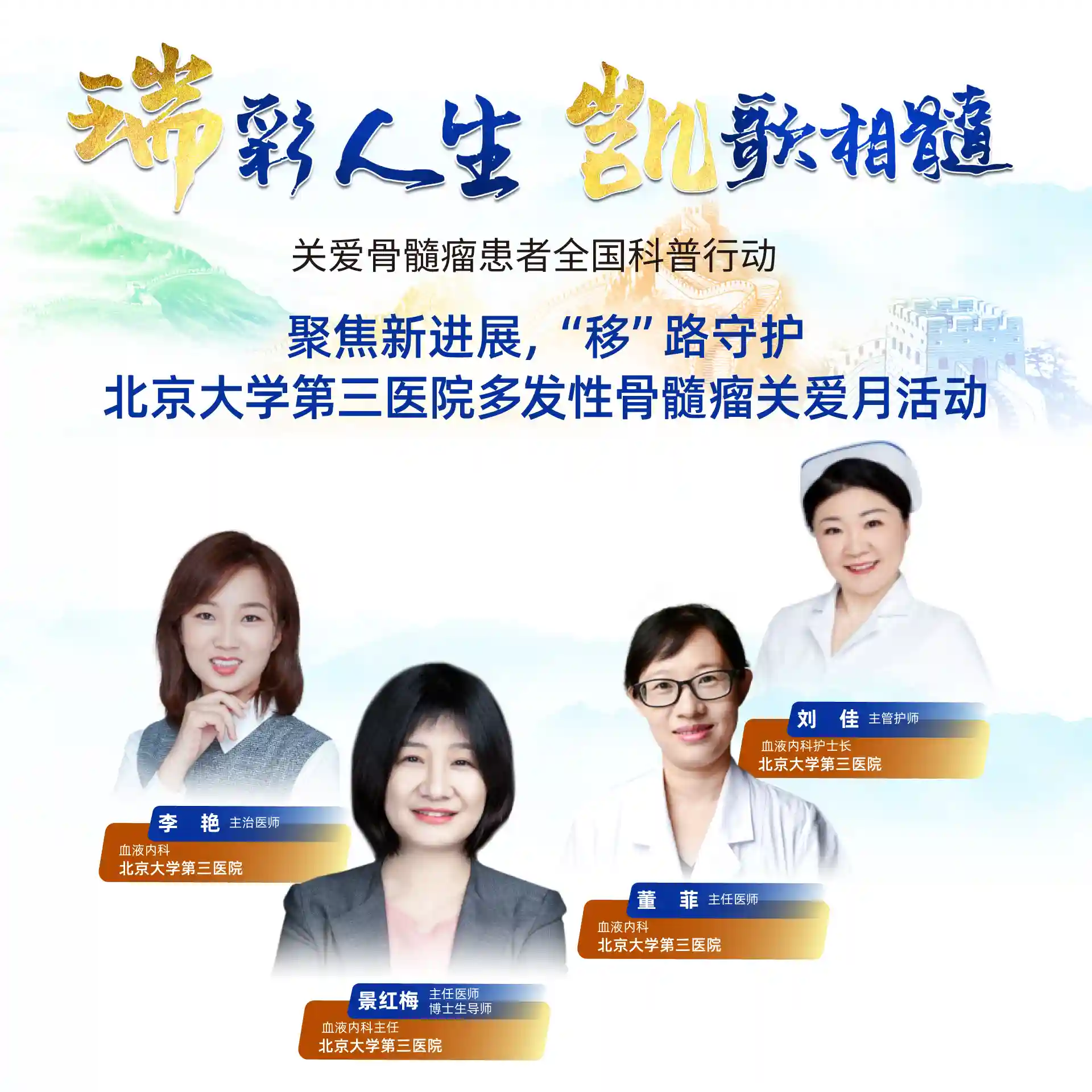 国际骨髓瘤基金会(IMF)提出将每年的3月作为“国际骨髓瘤关爱月”,旨在倡议医务人员、患者及相关护理人员行动起来,提升全社会对骨髓瘤的认识。