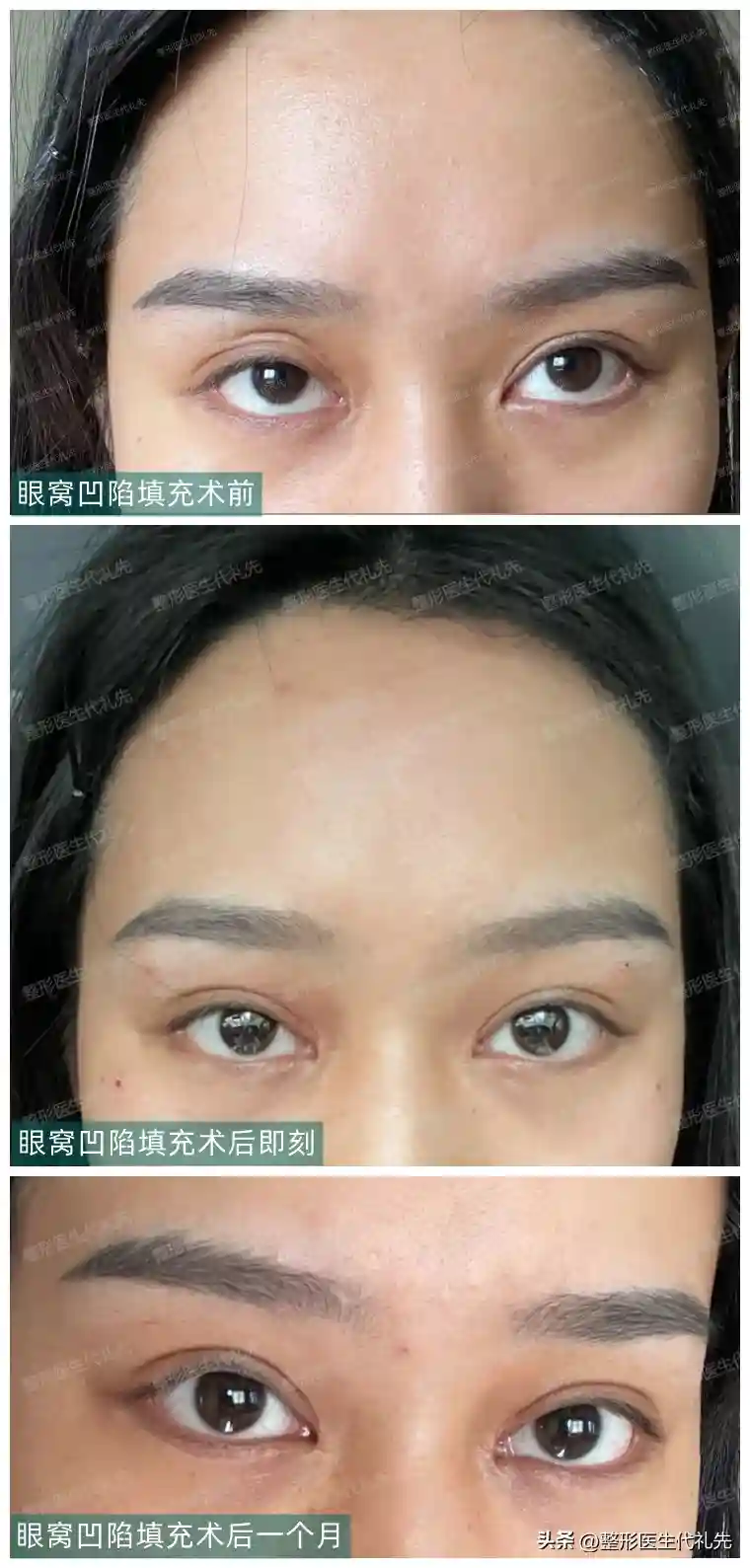 脂肪胶填充眼窝凹陷:术前、术后即刻、术后1个月对比