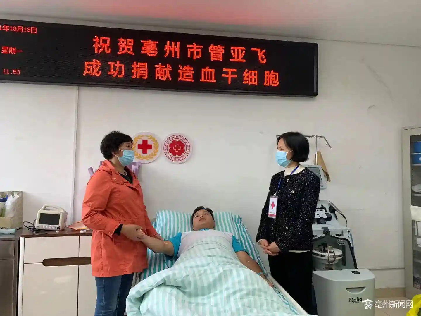 亳州市红十字会专职副会长苏芳介绍,管亚飞是我市第15位造血干细胞捐献者,体现了人道、博爱、奉献的红十字精神,希望更多爱心人士能够加入造血干细胞捐献队伍中来,帮助更多的血液病患者,挽救他们的生命。