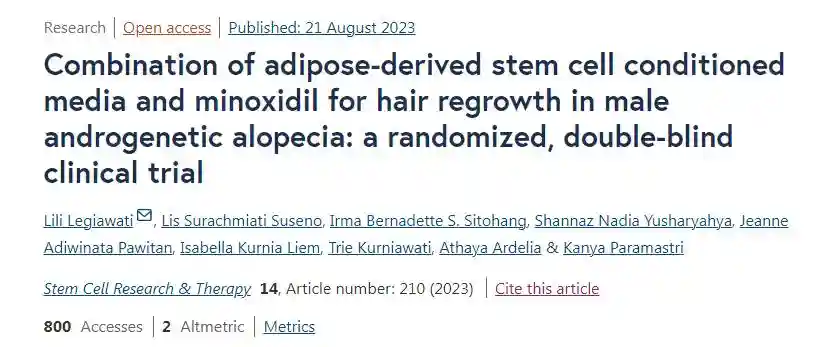 2023年,《StemCellResearchTherapy》发表了一篇《脂肪干细胞培养液与米诺地尔联合治疗男性雄秃的头发再生:一项随机、双盲临床试验》的文章。