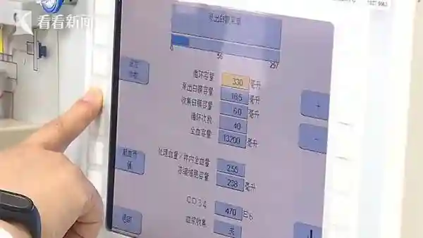 床旁的全自动血细胞机在采集了外周血后,会根据血液中不同成分的不同密度进行分离,最终收集到所需要的造血干细胞悬浊液。