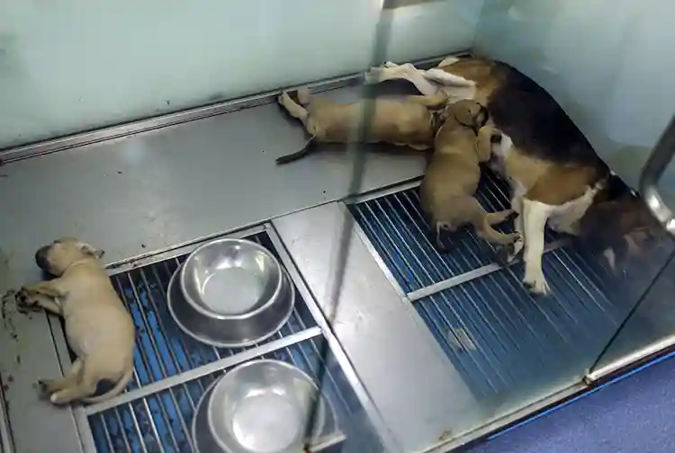 三只克隆小狗和代孕妈妈。