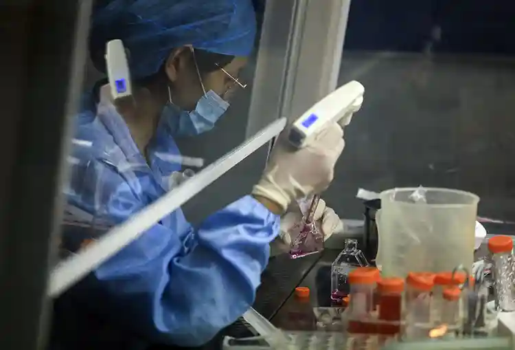 生物实验室,工作人员在进行细胞培养。