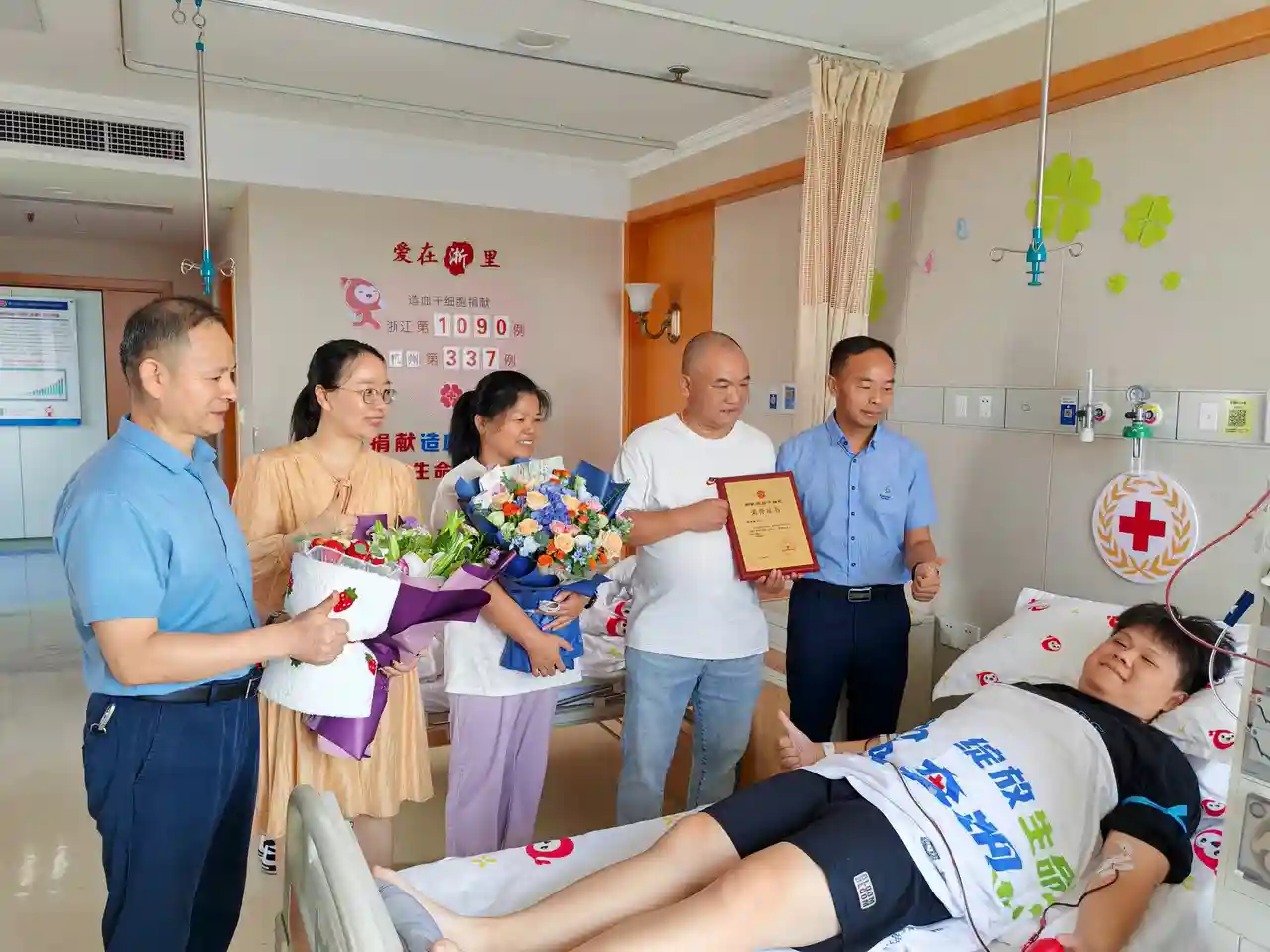 2022年10月,在上城区笕桥街道红十字会组织一场无偿献血暨造血干细胞入库活动中,胡鑫涛主动参加留取血样,申请加入中华骨髓库,成为一名造血干细胞志愿捐献者。“也许因为我的这次勇敢伸手,会有一位患者获得活下去的机会,会有一个家庭可以重燃希望,我想试试。”