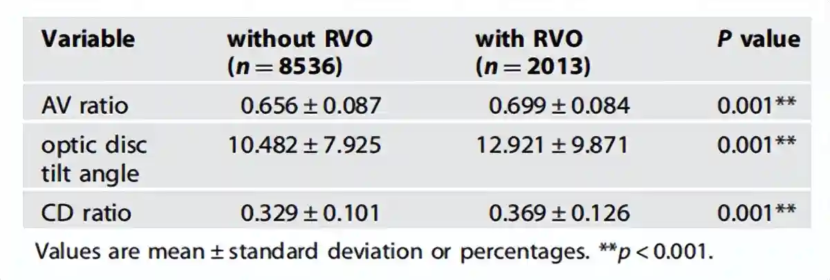 通过比较不同组别之间的视网膜参数差异发现,两组训练数据集的视网膜动静脉比(AVratio)、视杯与视盘比(CDratio)和视盘倾斜角均有显著差异,RVO患者的数值均较大。CAM可视化技术进一步发现,该模型主要是通过血管的迂曲度以及视杯视盘的形状变化做出决策。