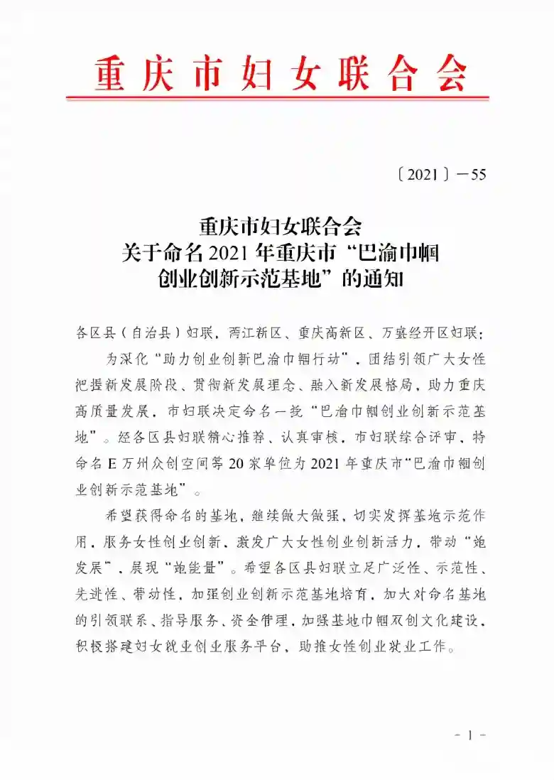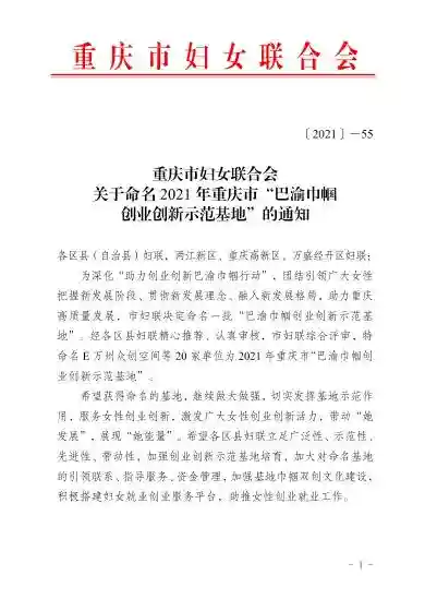 重庆市“巴渝巾帼创业创新示范基地”