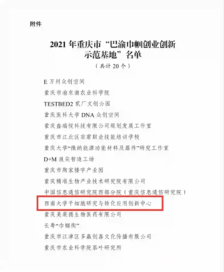 西南大学干细胞研究与转化应用创新中心