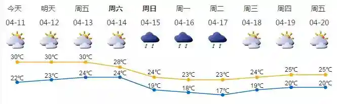 我市多云,早晚有轻雾;气温22-30℃;偏南风2-3级;相对湿度50%-95%