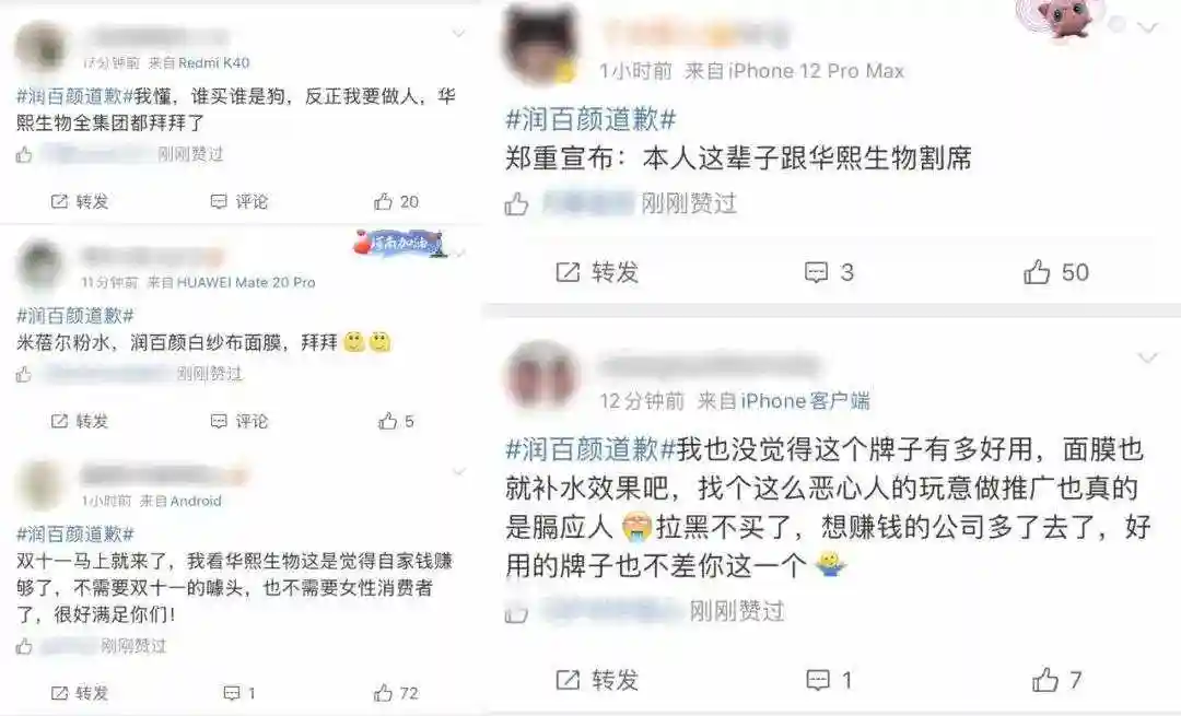 这次孙笑川推广润百颜事件发酵后,许多消费者表示不会再选择华熙生物旗下任何品牌,更有消费者表示会倒戈至华熙生物的竞对品牌。