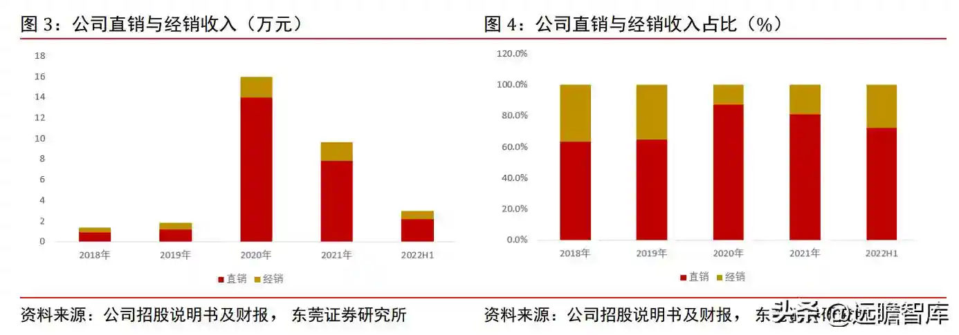 2022年上半年,由于新冠病毒相关产品收入占比有所下降,直销收入占比回落至72%,经销收入占比回升至28%。