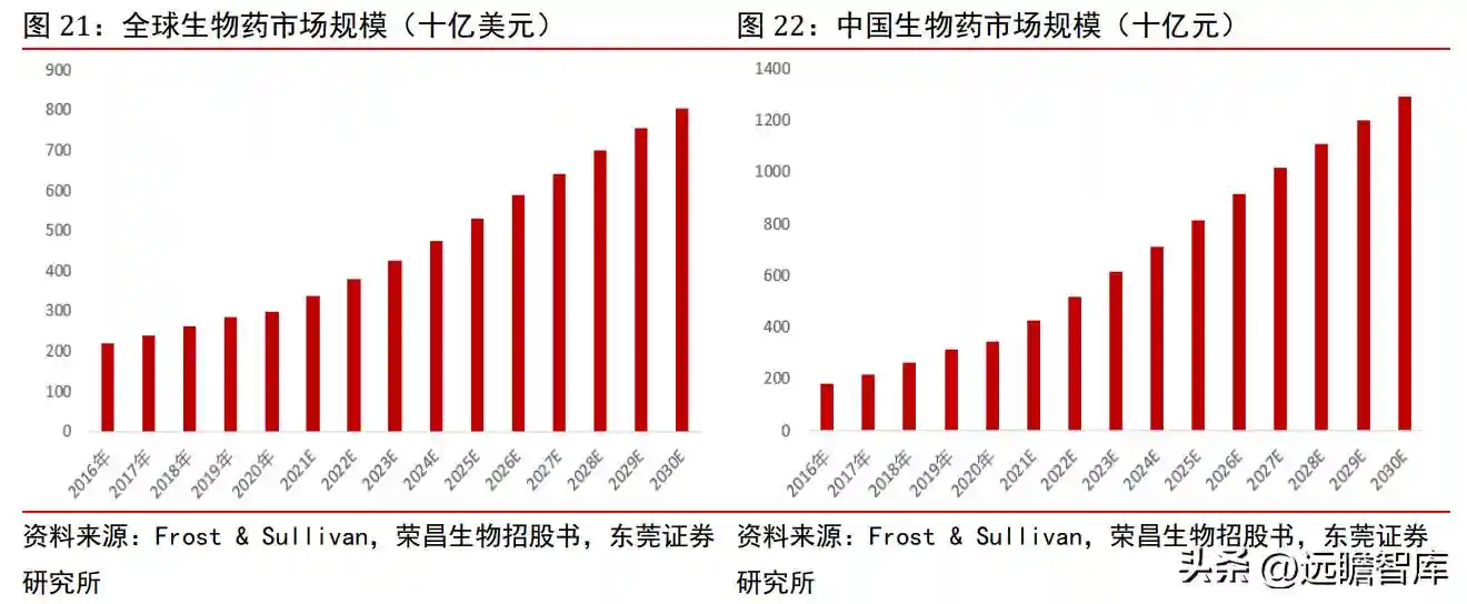 根据FrostSullivan数据,2016-2020年,全球生物药市场从2202亿美元增长至2979亿美元,年均复合增速约为7.8%;预计到2025年增长至5301亿美元,2020-2025年均复合增速约为12.2%。