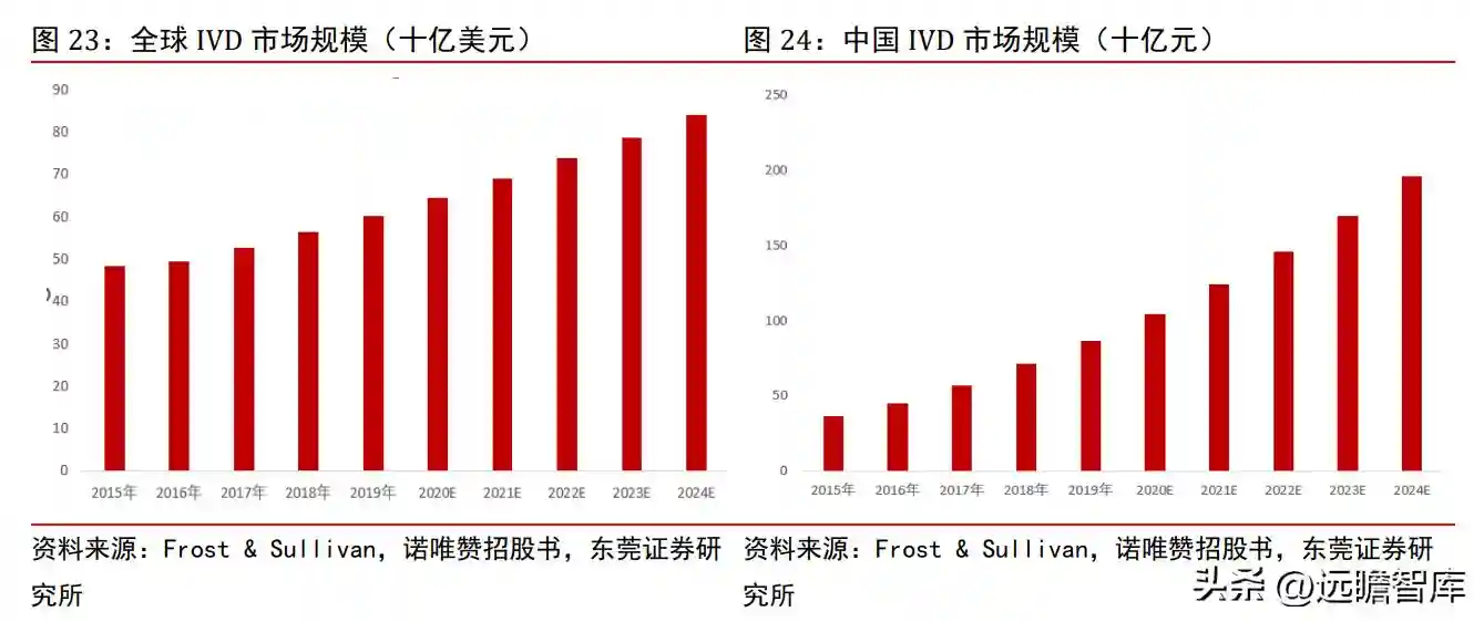 2015-2019年,中国体外诊断市场规模由366亿元增长至864亿元,年均复合增速约为24%;预计到2024年市场规模有望增长至1957亿元,2019-2024年均复合增速将达到17.8%。