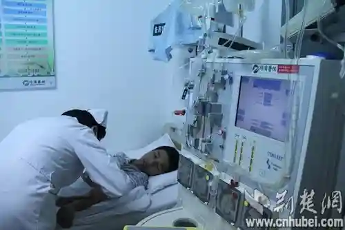 护士连接动静脉导管,李炳昊现场还是有些小紧张,在场的朋友、医护人员都在鼓励他。