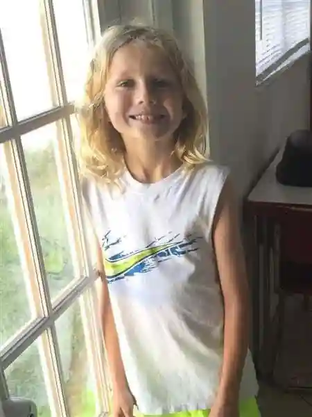 小男孩6岁的时候还是一头短发。