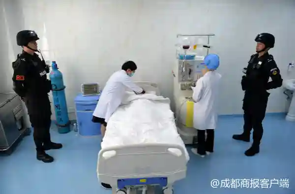 2018年3月11日,四川省成都市崇州监狱,郭某被带到监狱医院注射动员剂,为15日的手术做准备。