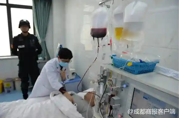 2018年3月15日,四川省成都市成都军区总医院,医生为郭某抽取造血干细胞。