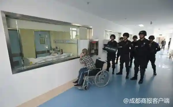2018年3月15日,四川省成都市成都军区总医院,抽取完造血干细胞后,郭某将被送回崇州监狱,出发前他再见了儿子小华(化名)一面。