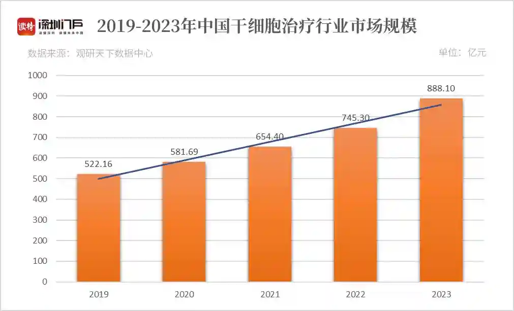 近年来,由于国家对先进医疗技术行业的重视和大力扶持,我国干细胞治疗行业市场规模也是呈现不断上升的趋势。据统计,2023年,我国干细胞治疗行业的市场规模已经达到了888.10亿元。