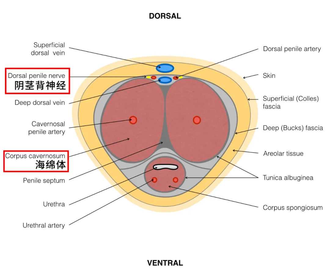 体积最大的那个,就是大家熟悉的海绵体啦,丁丁勃起壮大靠的就是海绵体充血胀大。另一个也很重要但比较少提到的,是背神经,负责传导男性的性快感。